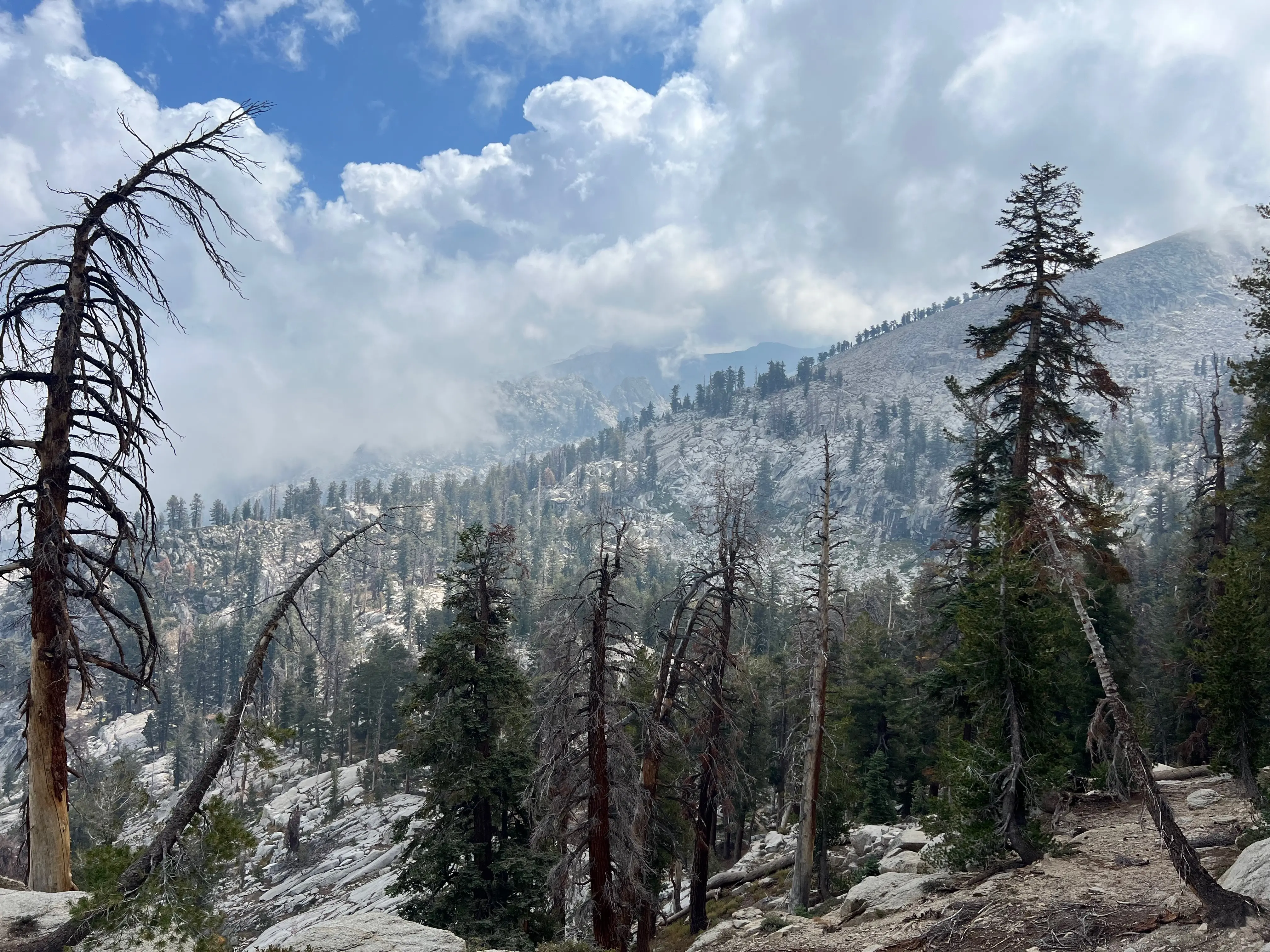 When I started hiking the Garnet fire smoke was definitely apparent, but wasn't a stop gap. Maybe due to the smoke there was a lot of nucleation for the humidity to build on. Rain started around 17:00 which may have helped clear the air and create a beautifully clear weekend!