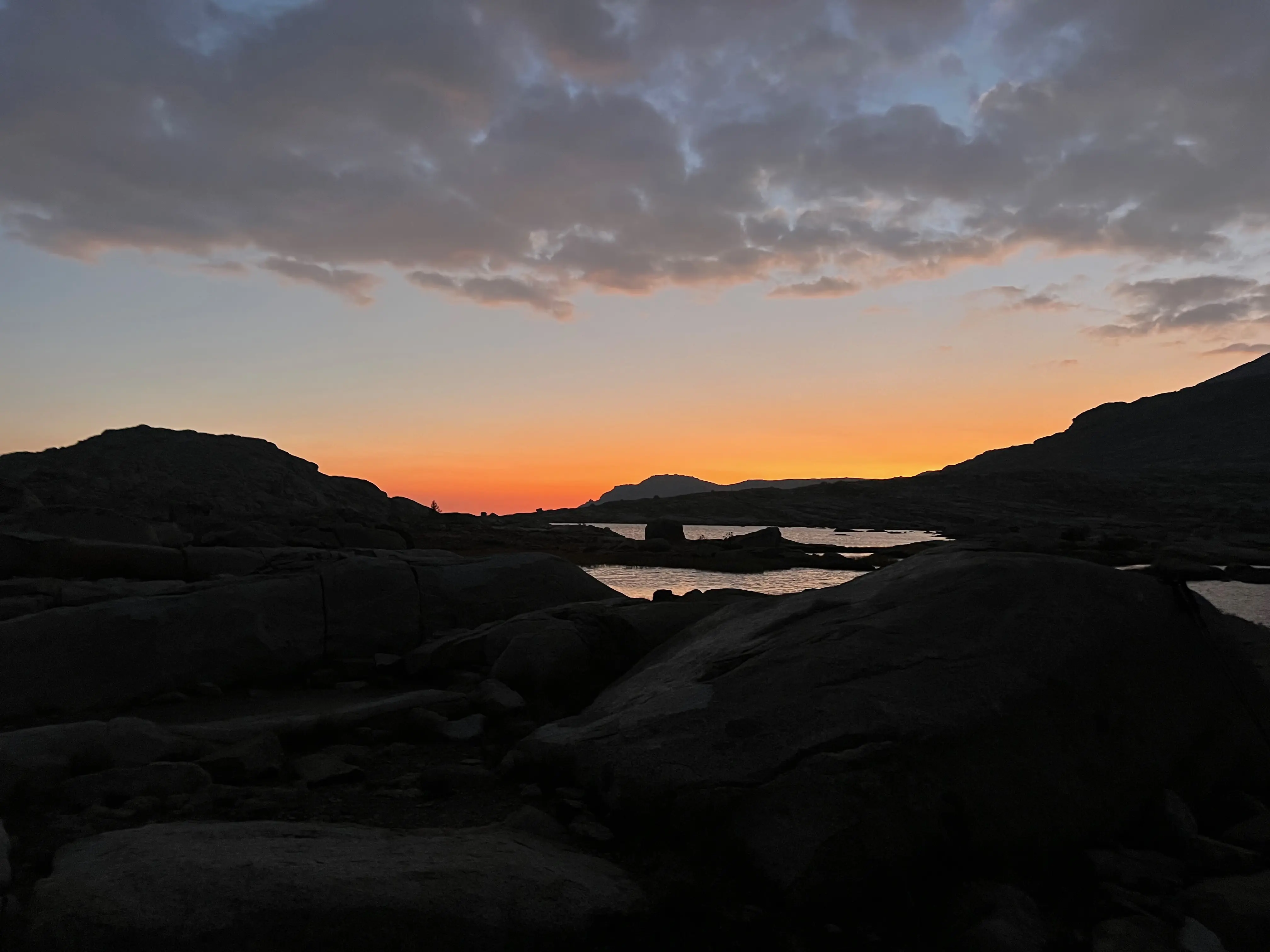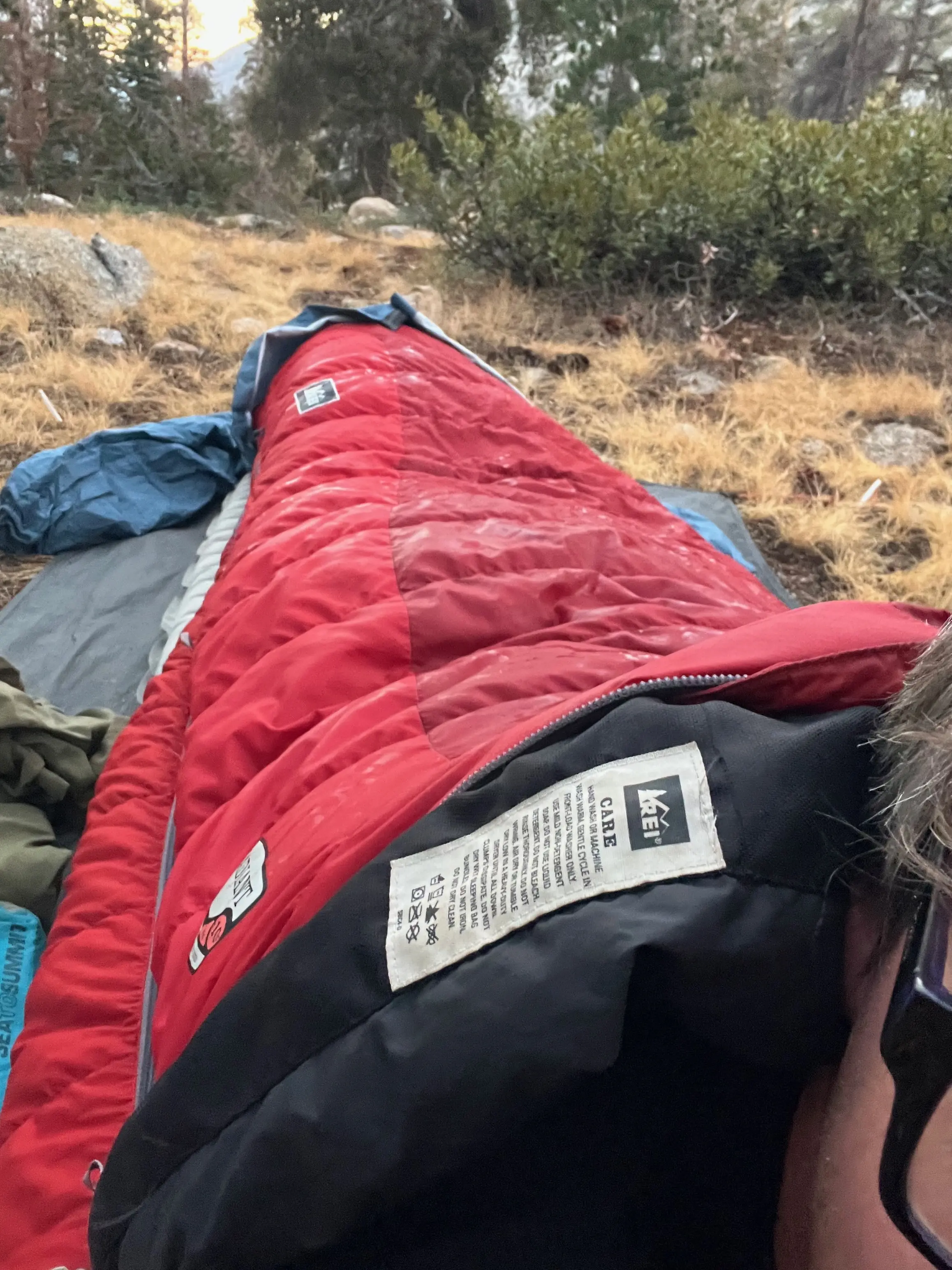 I was tuckered out on day two. Ready for a big sleep! Took some nice pics of the alpenglow on the canyon wall and conked out. I hiked 13 miles with 30lbs over two passes with much elevation and route finding. Luckily I had Chicken Fajita Mountain House meal and tortillas! If only I didn't forget the dang Tapatio! Before passing out I saw some amazing shooting stars while sleeping out untented.