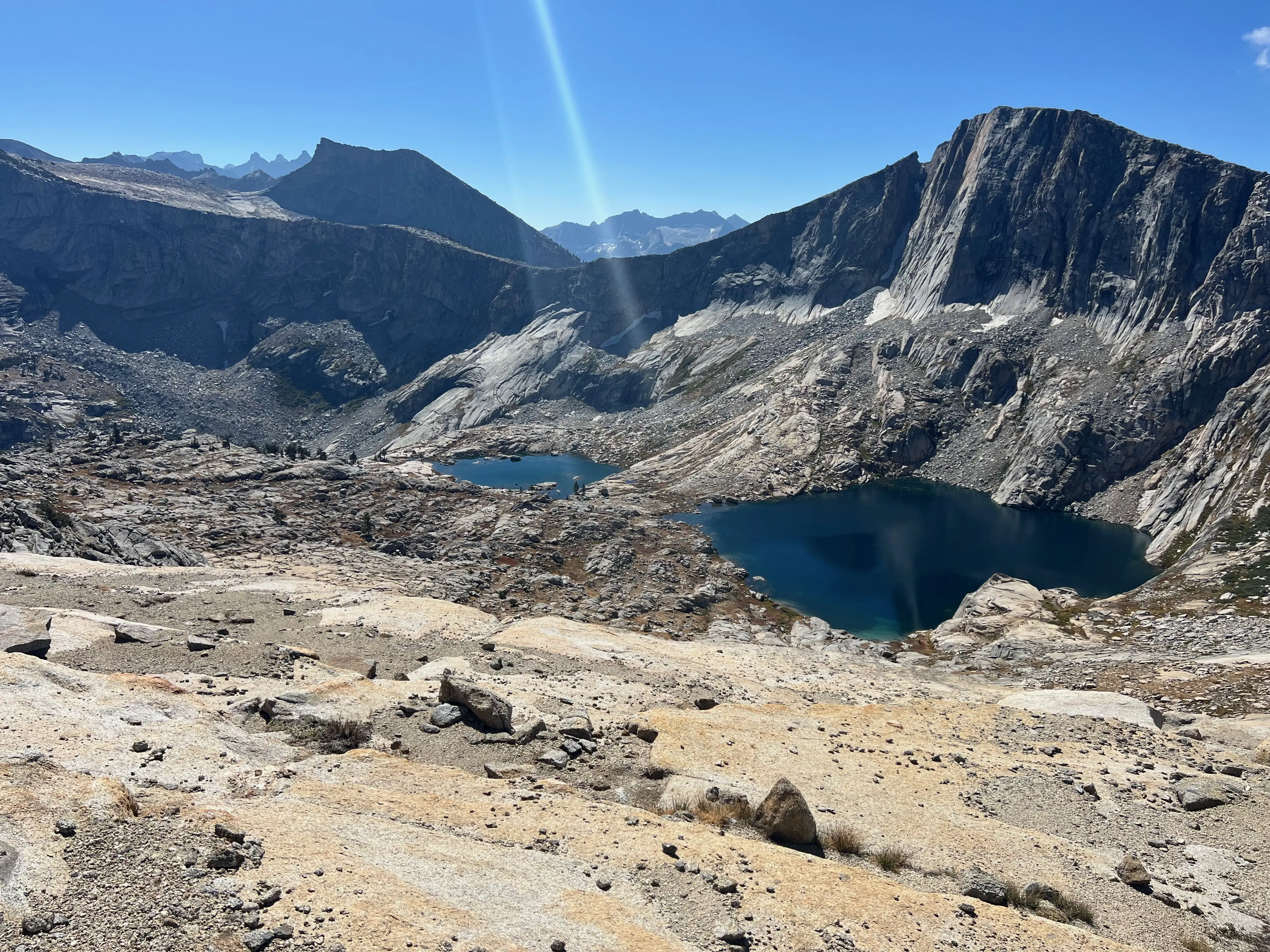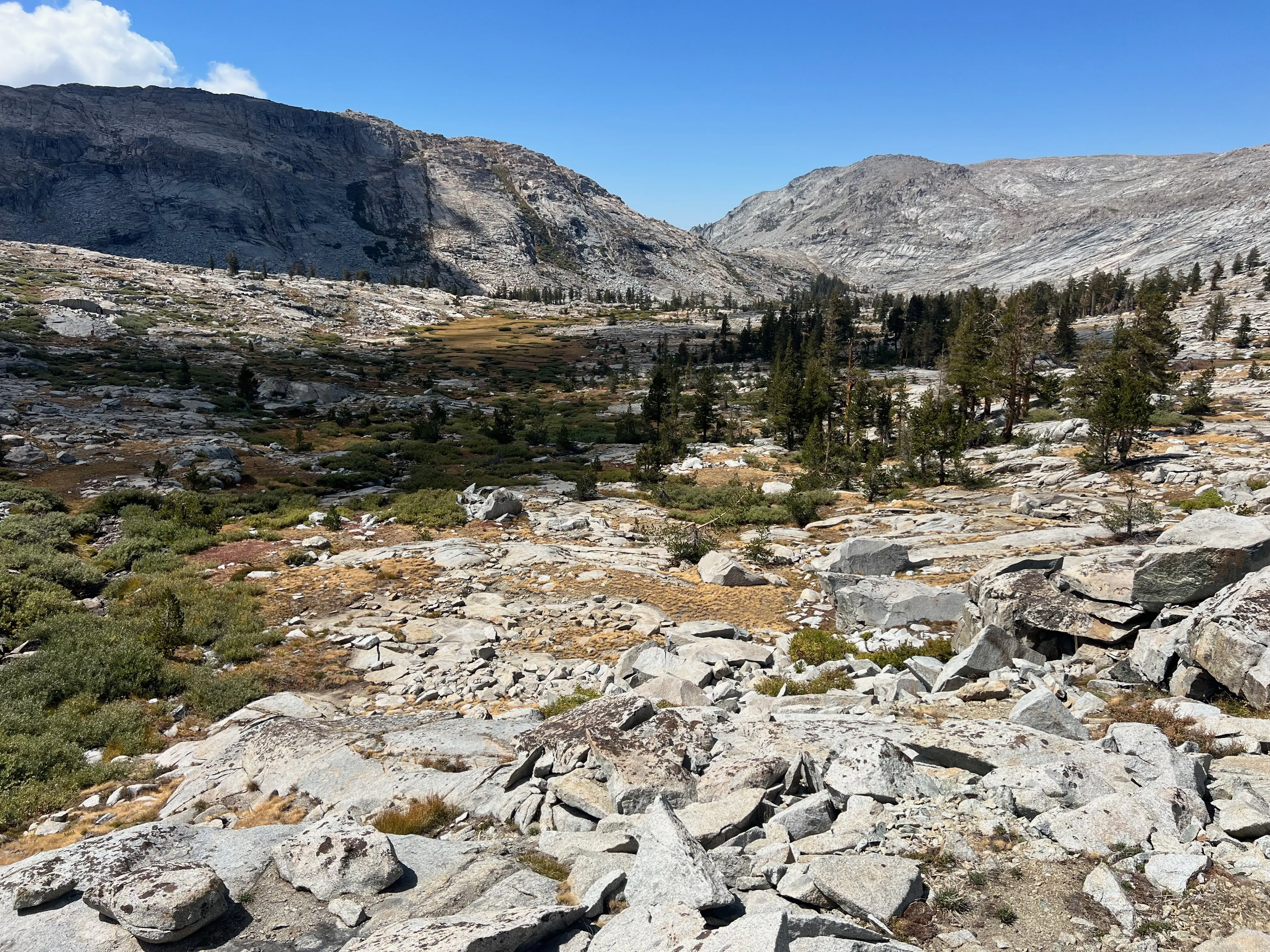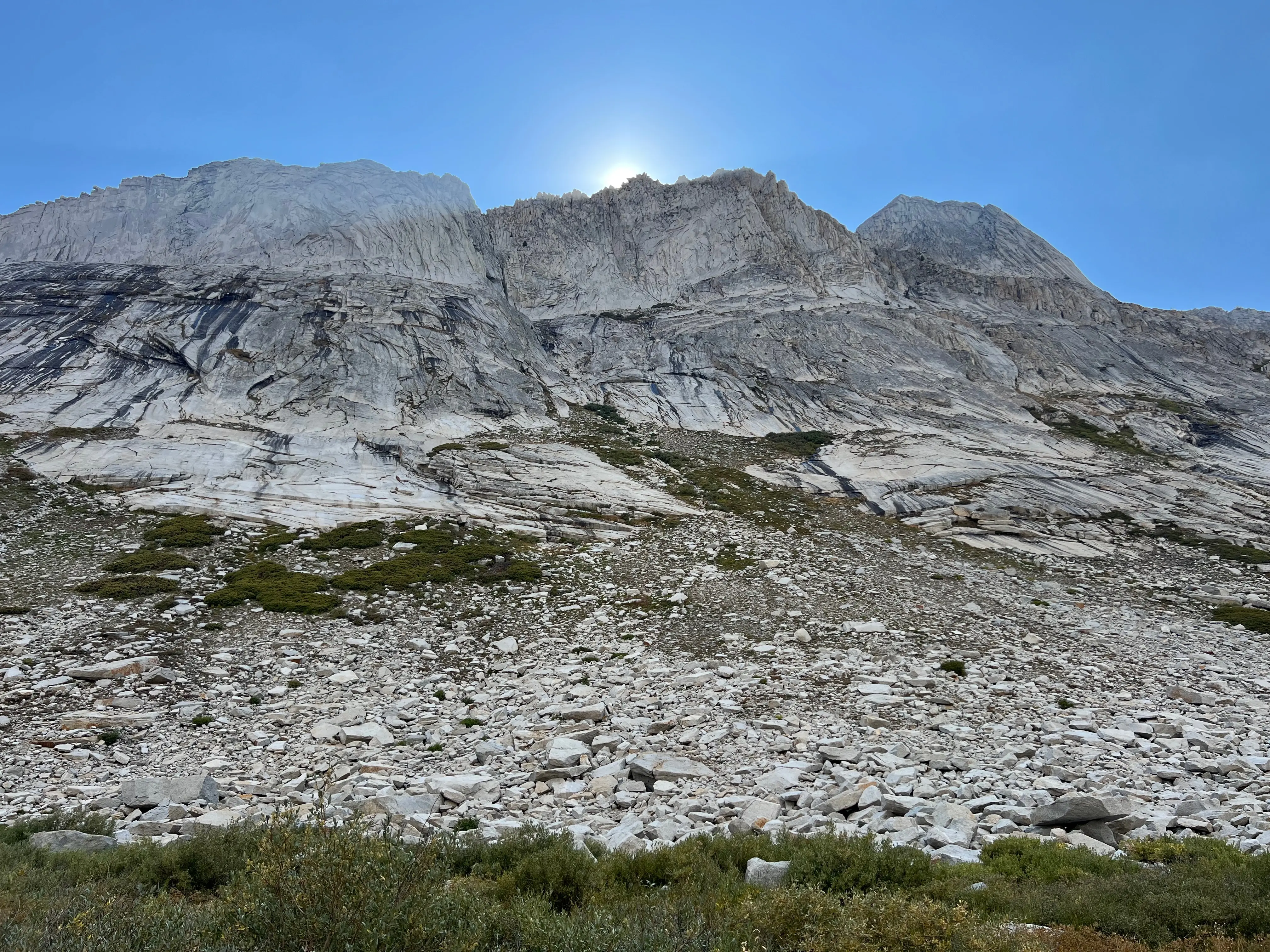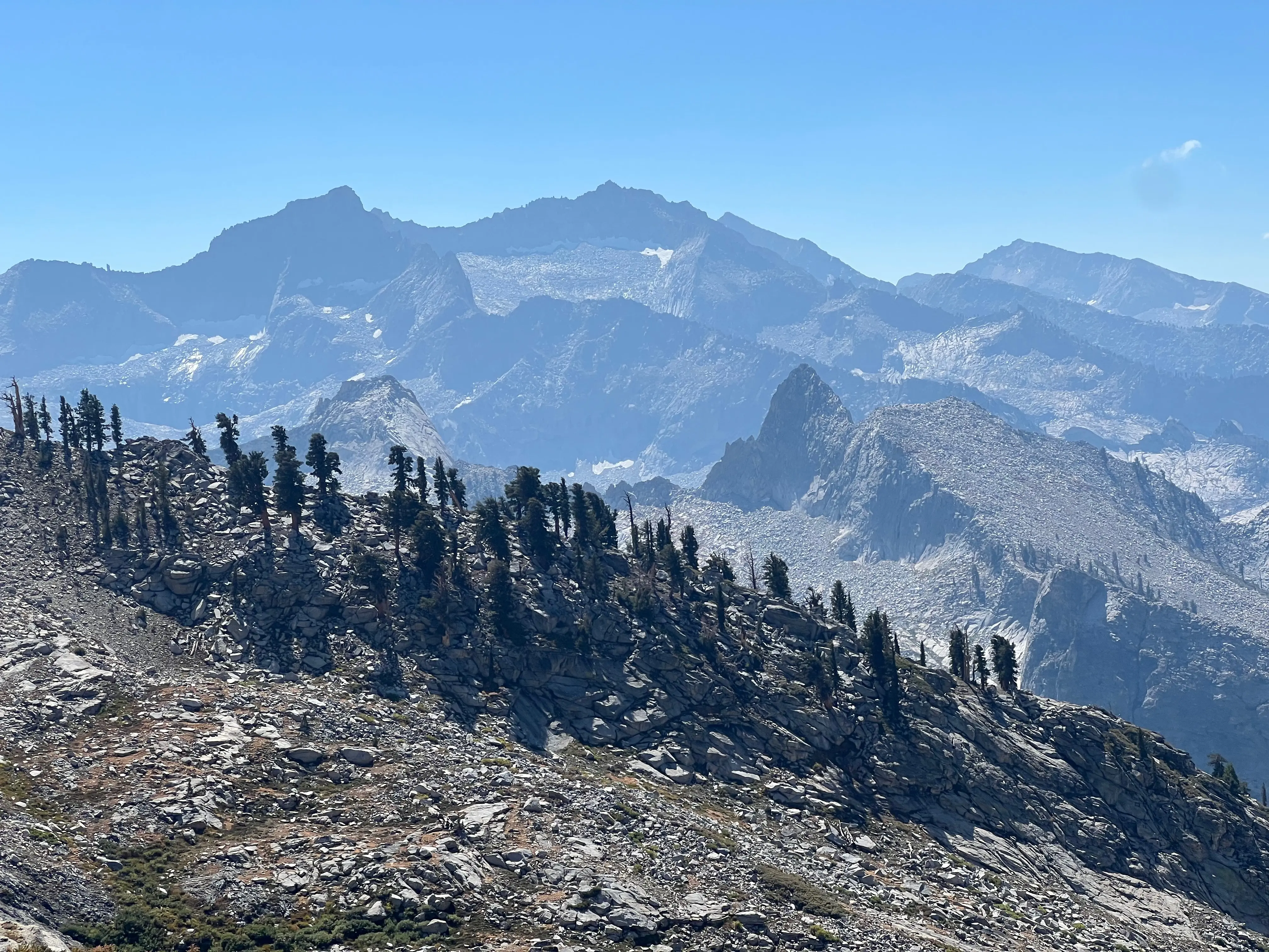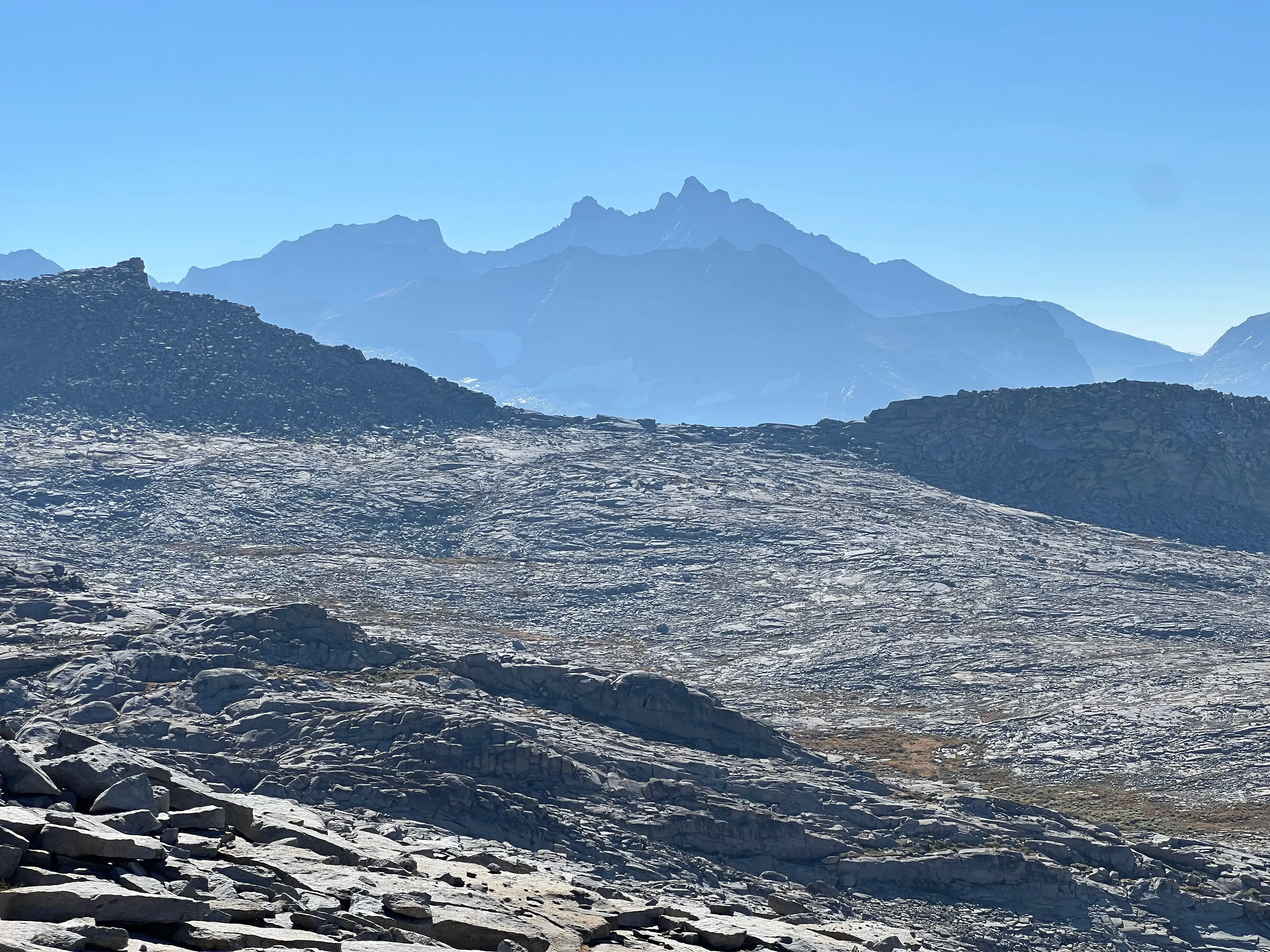 I was a little worried about Pterodactyl Pass since I hadn't read too much detail about the route. Once I was on it though it was pretty obvious. I stayed high and got to the saddle around 10:30, easy peasy. The views of the surrounding area were breathtaking! Looking down Buck Creek and seeing Timber Gap in the distance was absolutely beautiful. Mt Stewart and the Lilliput Glacier were stunning. The Kaweahs were standing strong and prominent in the background, commanding attention. The relief created by the different layers of rock and mountain made it feel like I was higher than the 11,000ft of the pass! From here I could see two options, Horn Col or down and up the Big SEKI Loop over Elizabeth Pass. I hadn't read whether Horn Col was doable and looking at the glaciated slick granite, decided against it. In hindsight I wish I had given it a shot since it now seems doable from what I've read. But traveling solo as I age has made me a little more cautious without proper preparation.