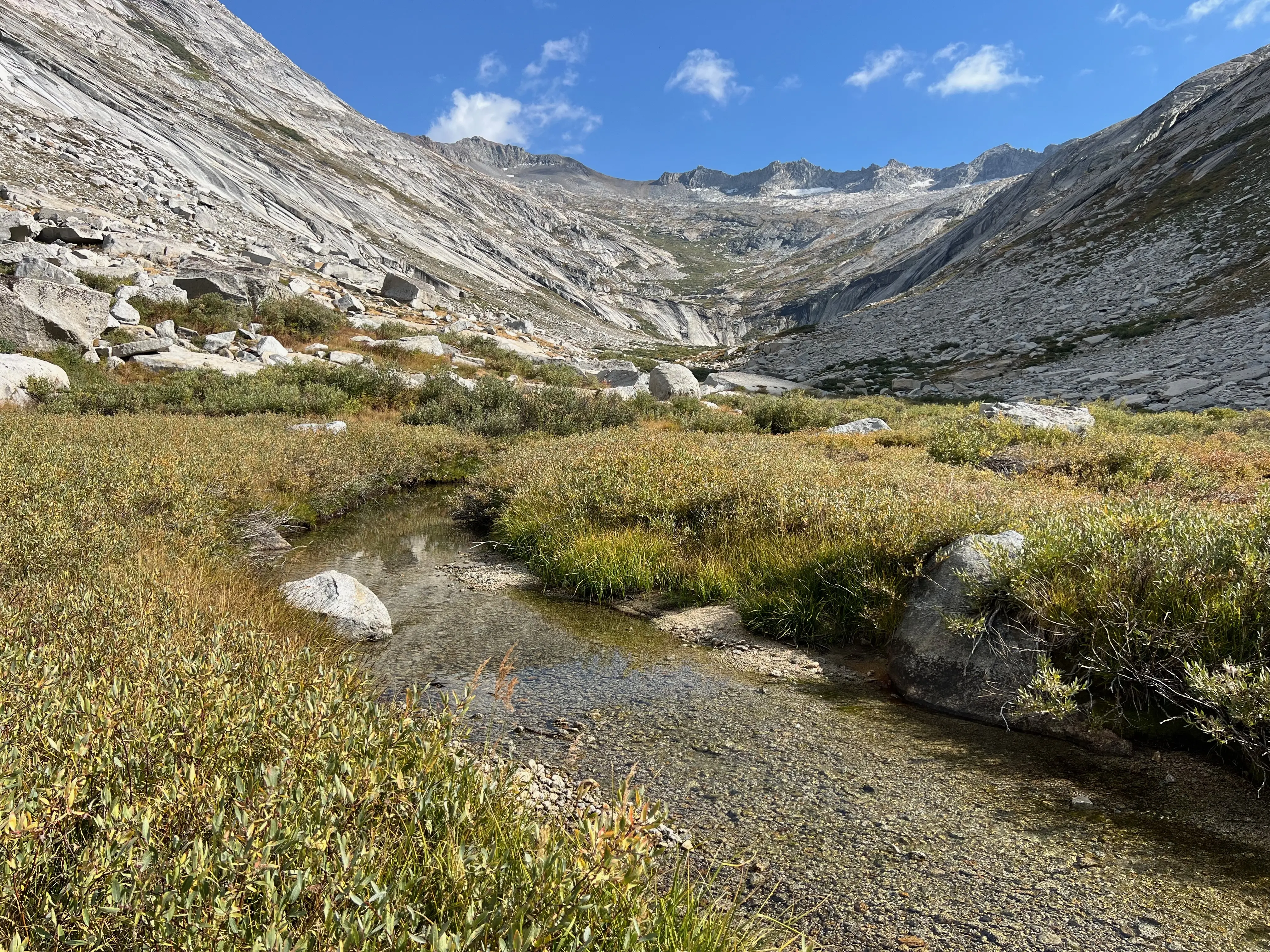 This day was going to be a little tough. My plan was to hike up the South side of the Big Bird Lake outlet stream then around the lake and up the chain of lakes that ran along the western side of the lake. From the topo it looks super doable. And maybe it is. But after getting maybe a quarter way around Big Bird I know the North West side to the saddle would be WAY easier.
