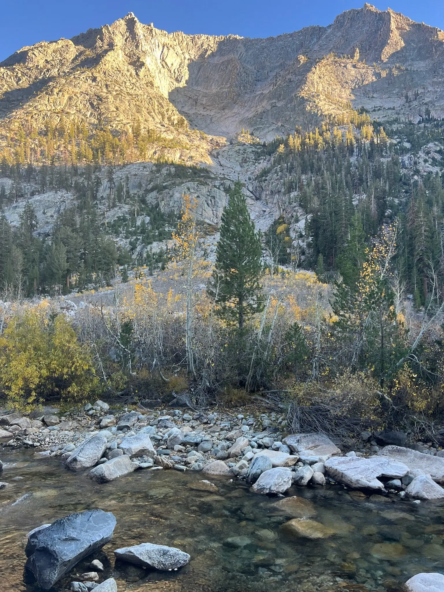 It was hard waking up on day 3, the temperature mid October really dropped. It was definitely below freezing, but without a thermometer, I can't be entirely sure what it was. Probably in the 20's. All our water froze and I woke up covered in frost and ice! Luckily my REI sleeping bag from 2010 still keeps me warm! Day 3 was pretty chill, we only hiked 11 miles and it was essentially all down hill. We had a solid hour long break at an amazing spot on Woods Creek. We got a great dip in the freezing river in. I have never felt so clean!