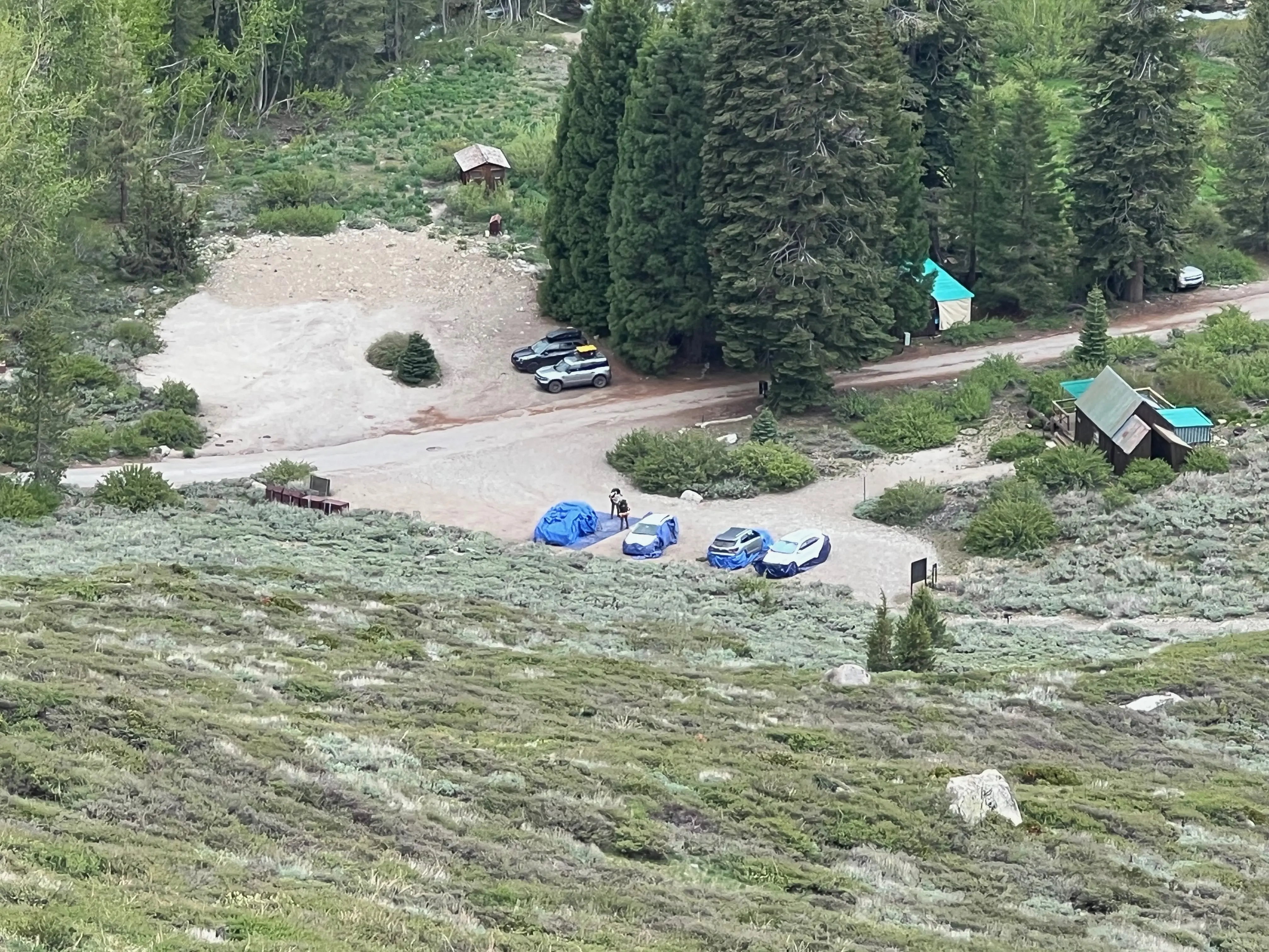 I was bummed to have to abandon our planned Kern River Hot Springs trip, but gotta go with the flow in the Sierras. We burrito rolled our car with tarp to protect from the marmots and we were off.