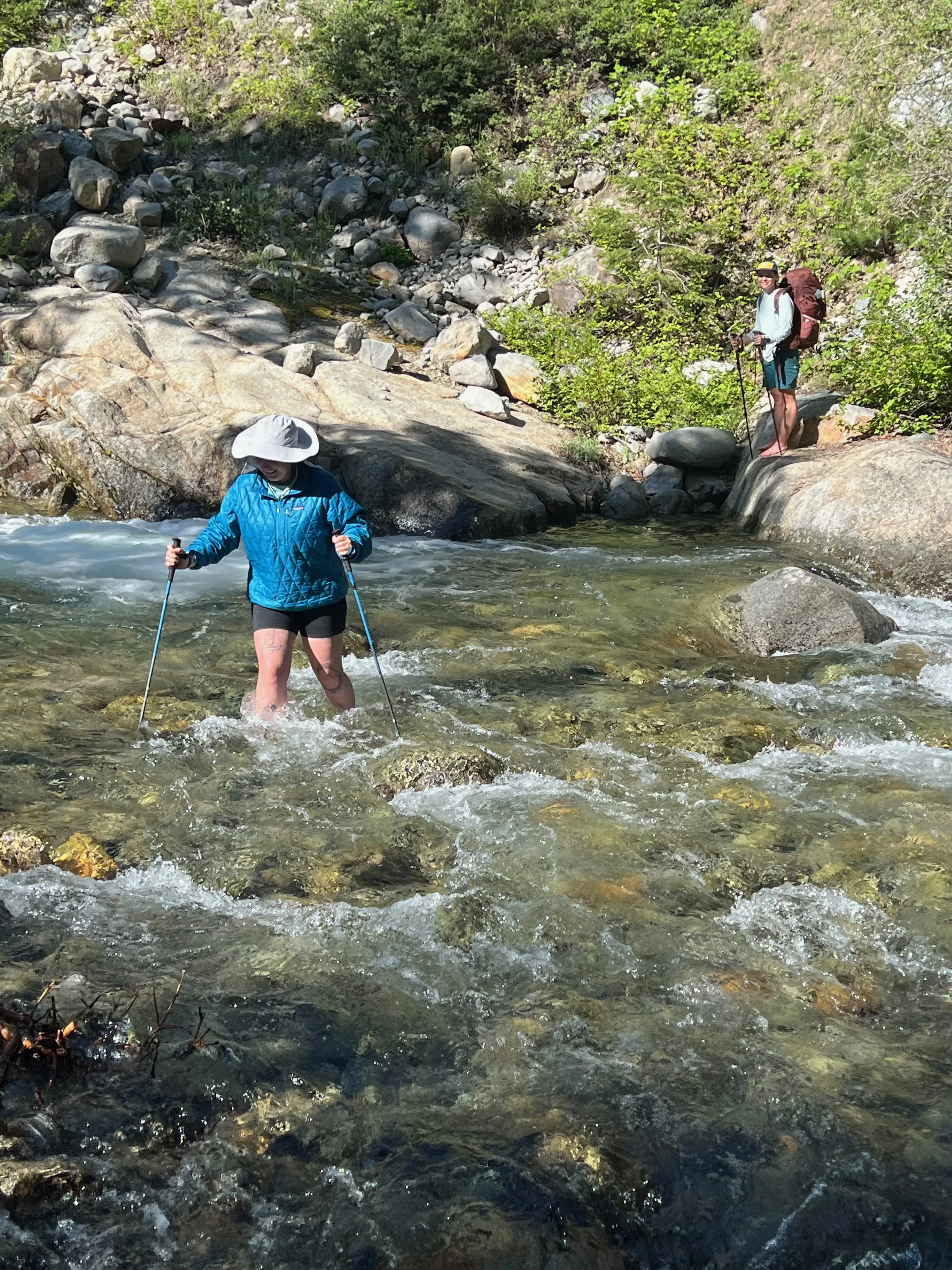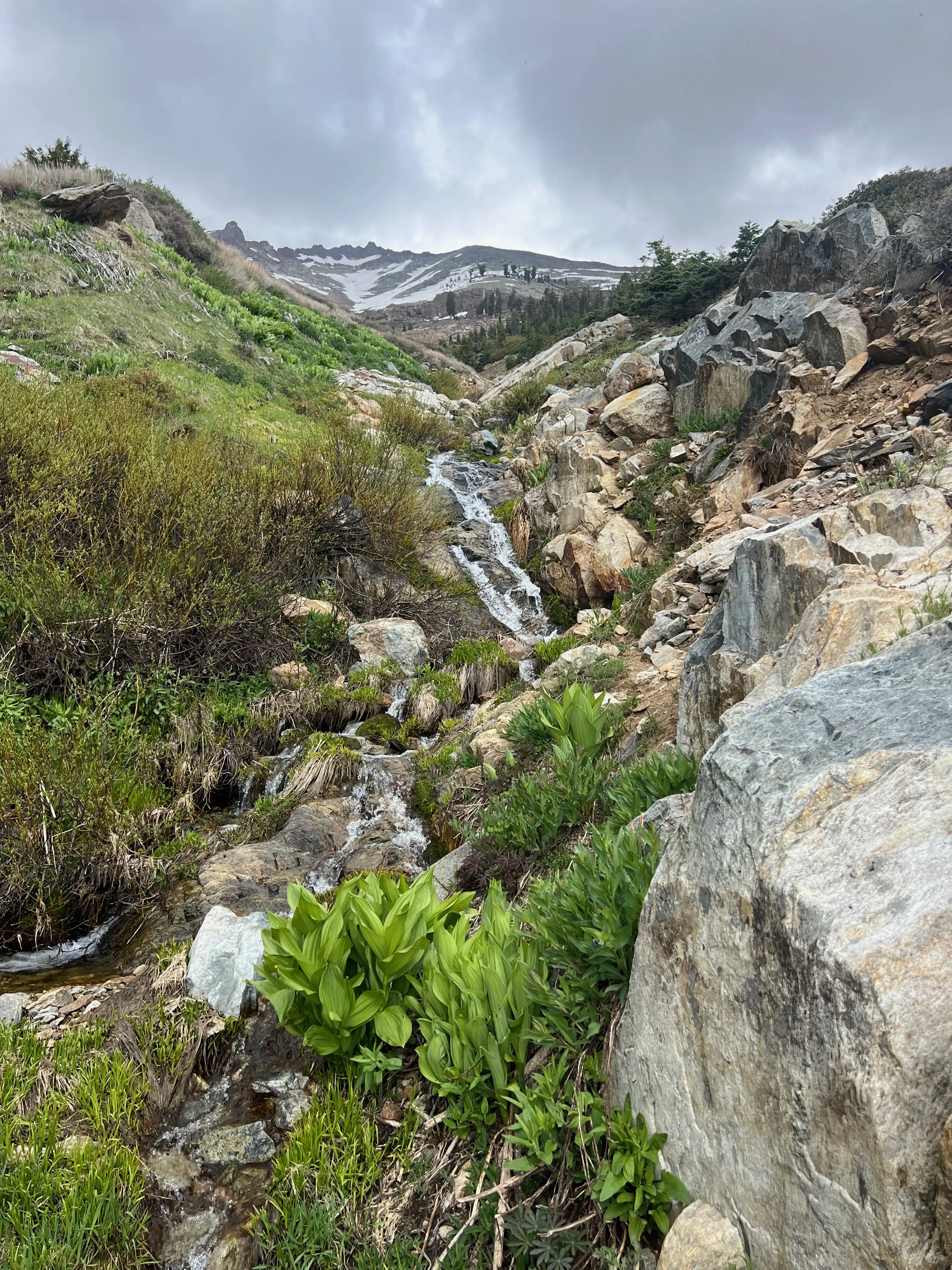 The sign said campsite 0.2 miles away, but it was super unobvious where the campsites were. We went up and down the fork and ended up going towards the western Granite Creek instead of East towards Eagle Scout Creek. We found a fire ring adjacent to the creek which was still flowing early in the season. I also saw another bear and frightened it away by smashing sticks and shouting "Hey Bear!", the girls were unaware I saved their life 😏