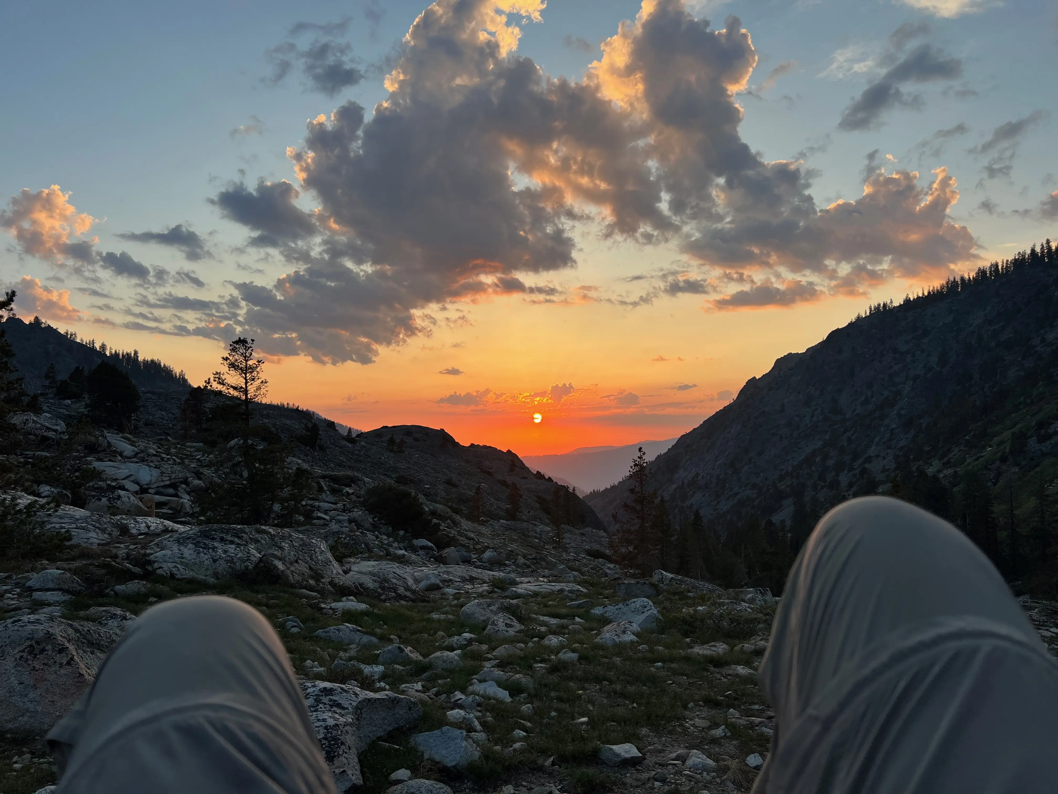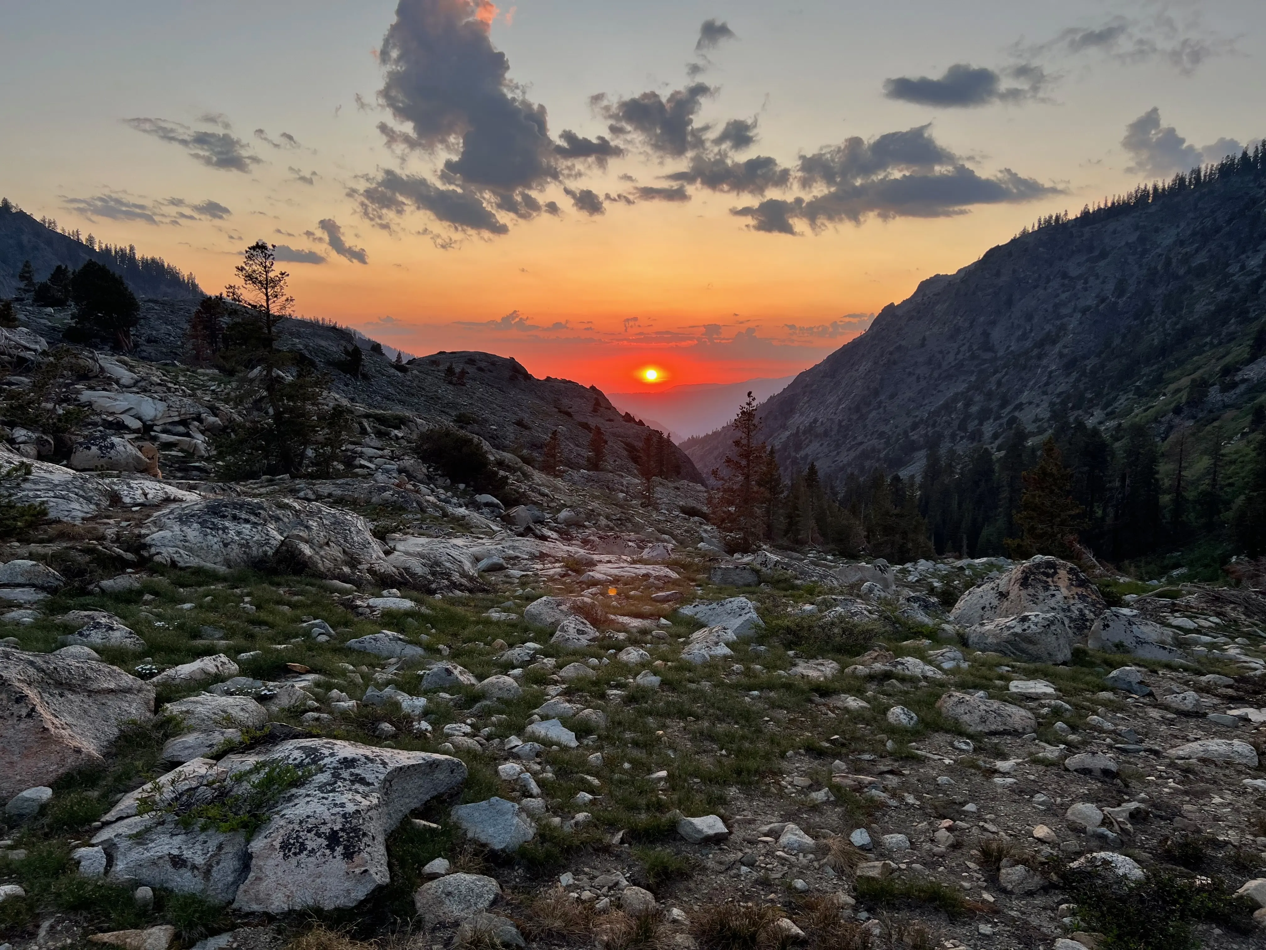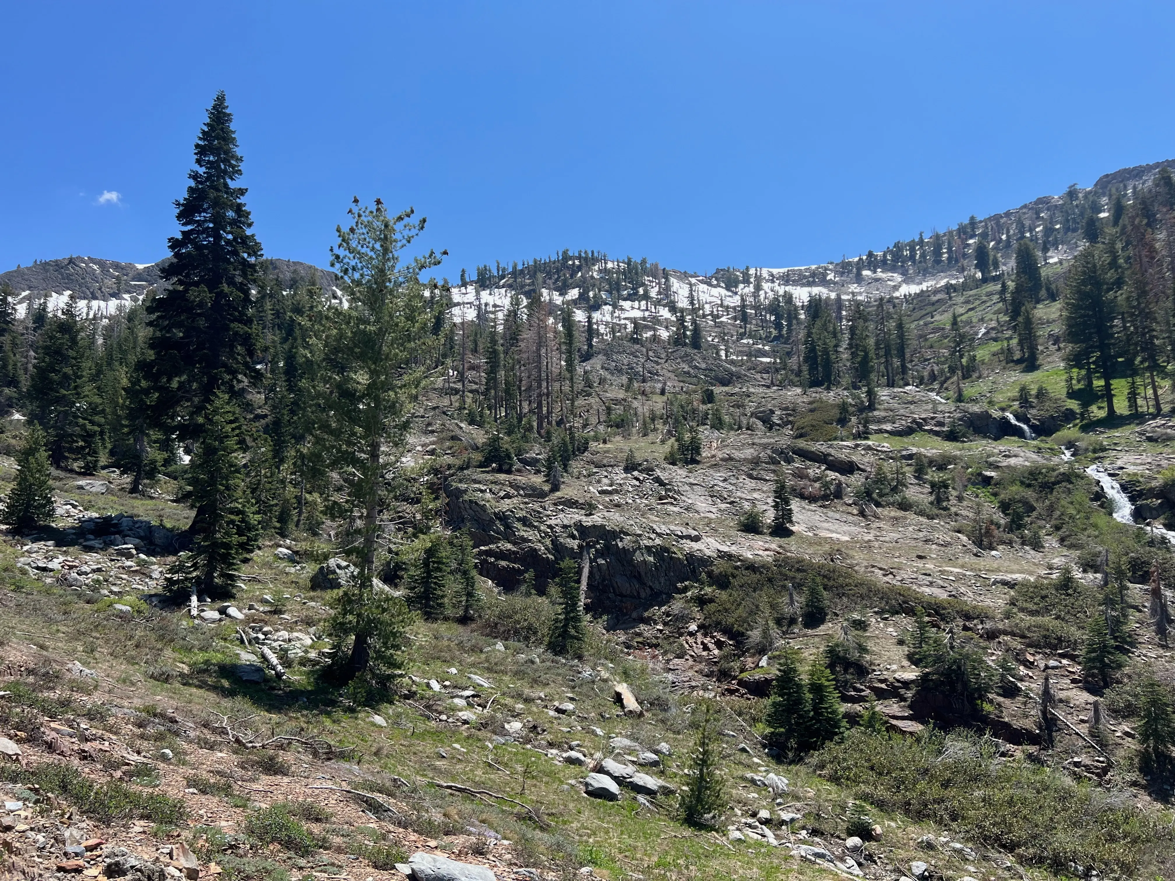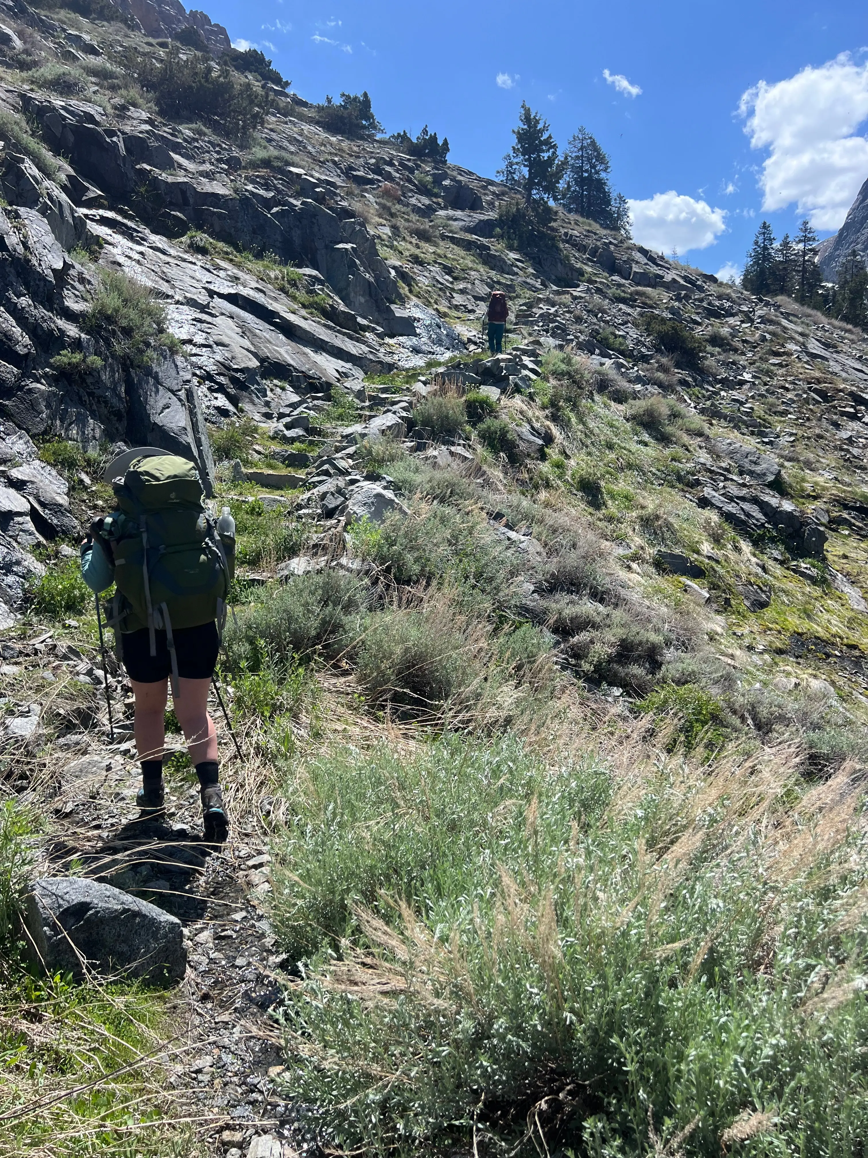 The first day was going to be a challenge. We had full packs with 6 days worth of food and we had to hike 2.7 miles up with 1700ft of elevation gain. Plus we were unacclimated. Luckily the Sierras graced us with a light drizzle to keep us cool and refreshed. In hindsight, I wished we ditched some food in the parking lot bear box, but at the time we didn't know we were getting out early :(