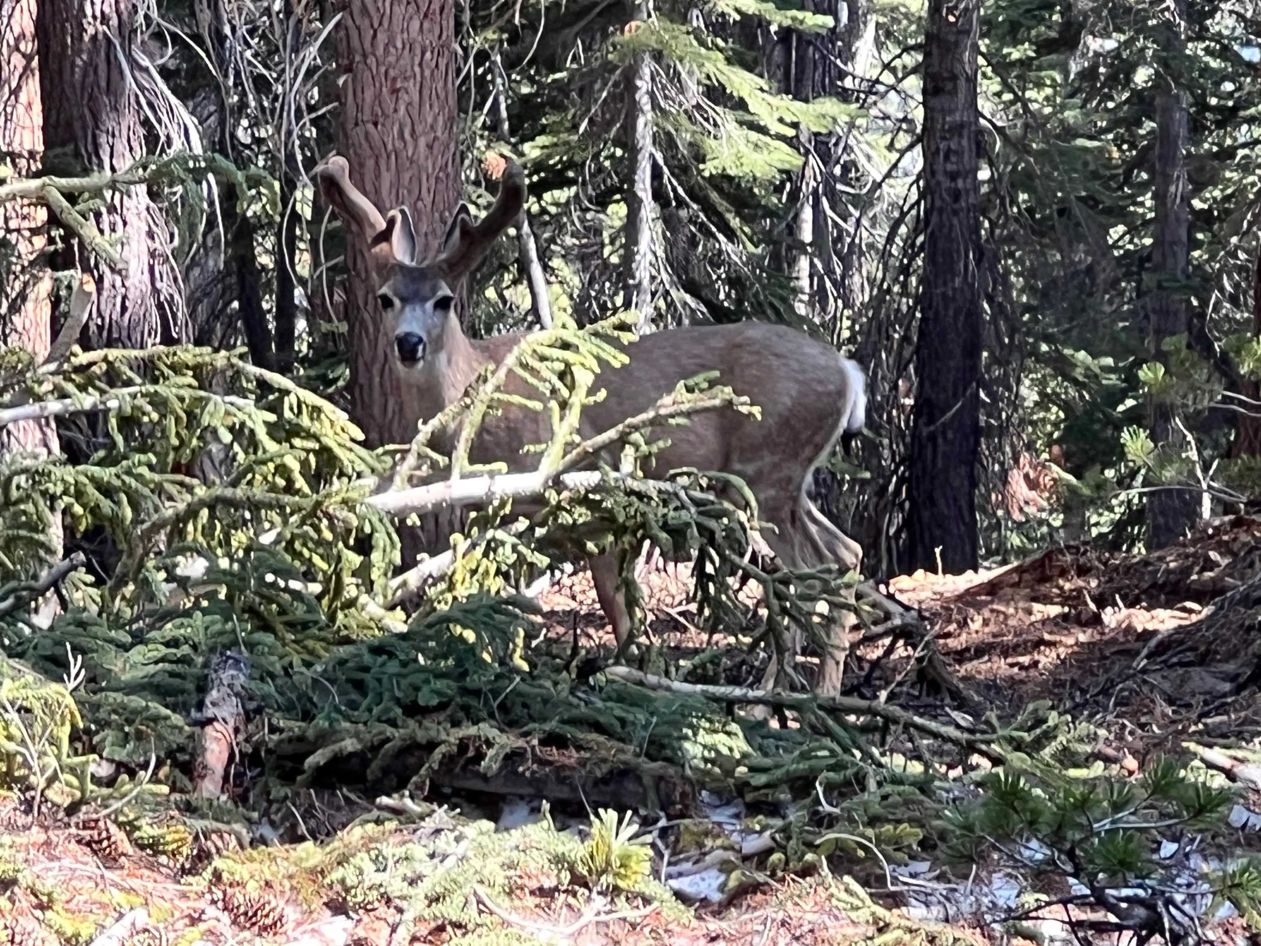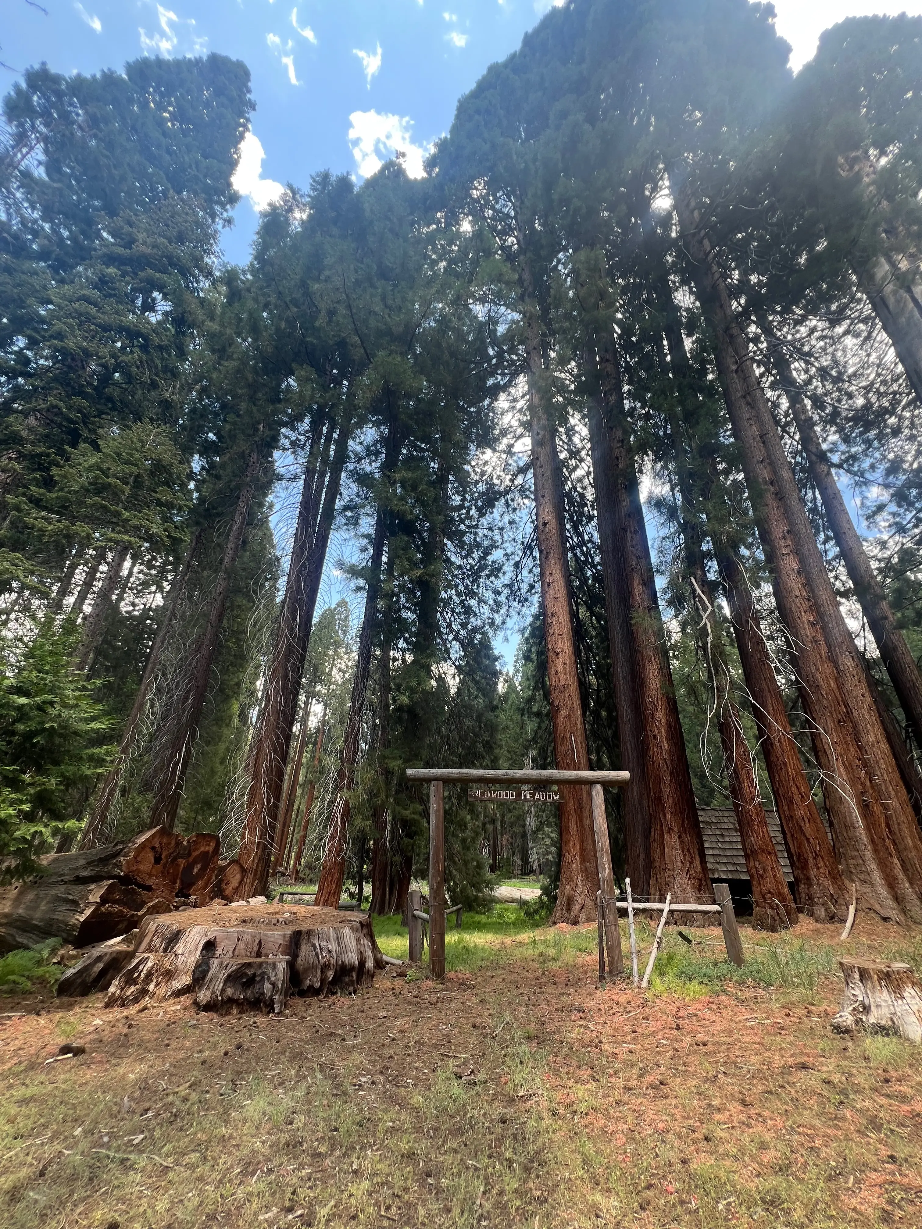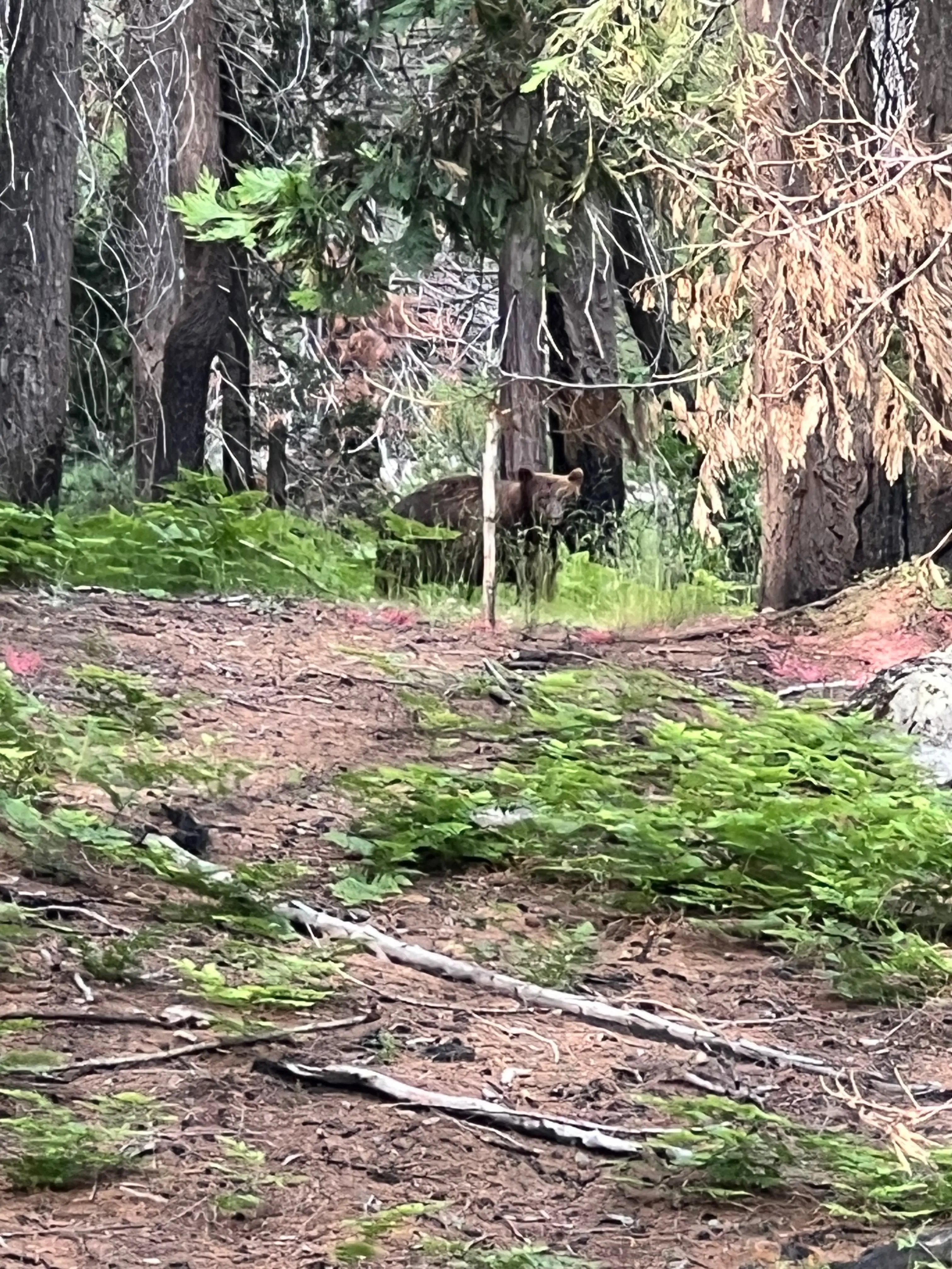 Redwood Meadow Grove was super odd! There was a few cabins, a horse/cattle coral. From my little research the cabin used to be a ranger station built in 1938 by the Civilian Conservation Corps, but is no longer used other than by some trail maintainers on occasion. The cabins in the area were boarded up and padlocked. We hung out on the deck and enjoyed the space for lunch. We also saw two black bears prowling the area!