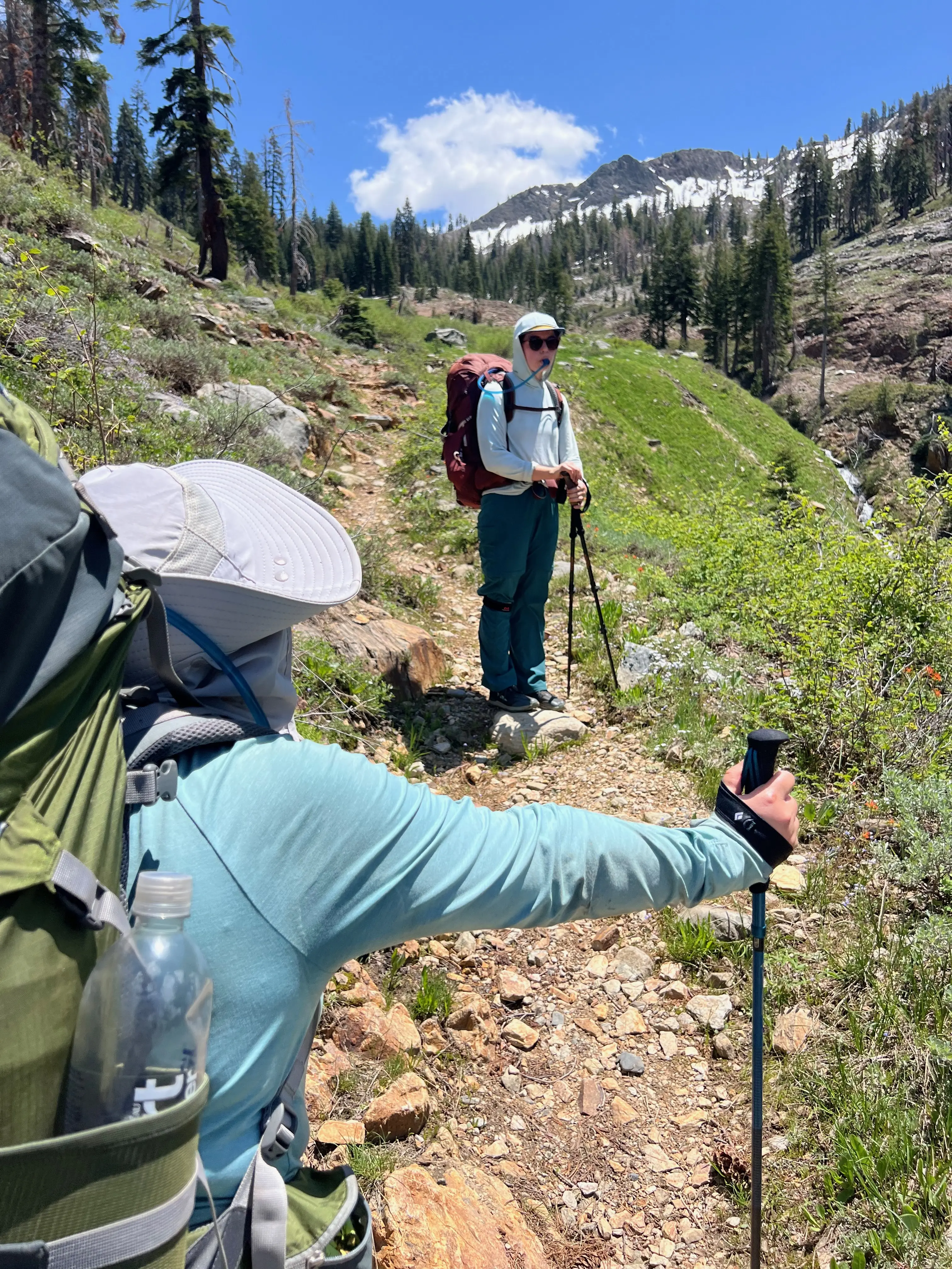When we got to Pinto Lake we took a quick dip in the gorgeous meadow stream. Took a nice long break and then day tripped towards Black Rock Pass. At around 10,600ft we turned around. Our buds tried to continue, but when we saw them later they said the snow was too much to make it to Little Five Lakes Basin.